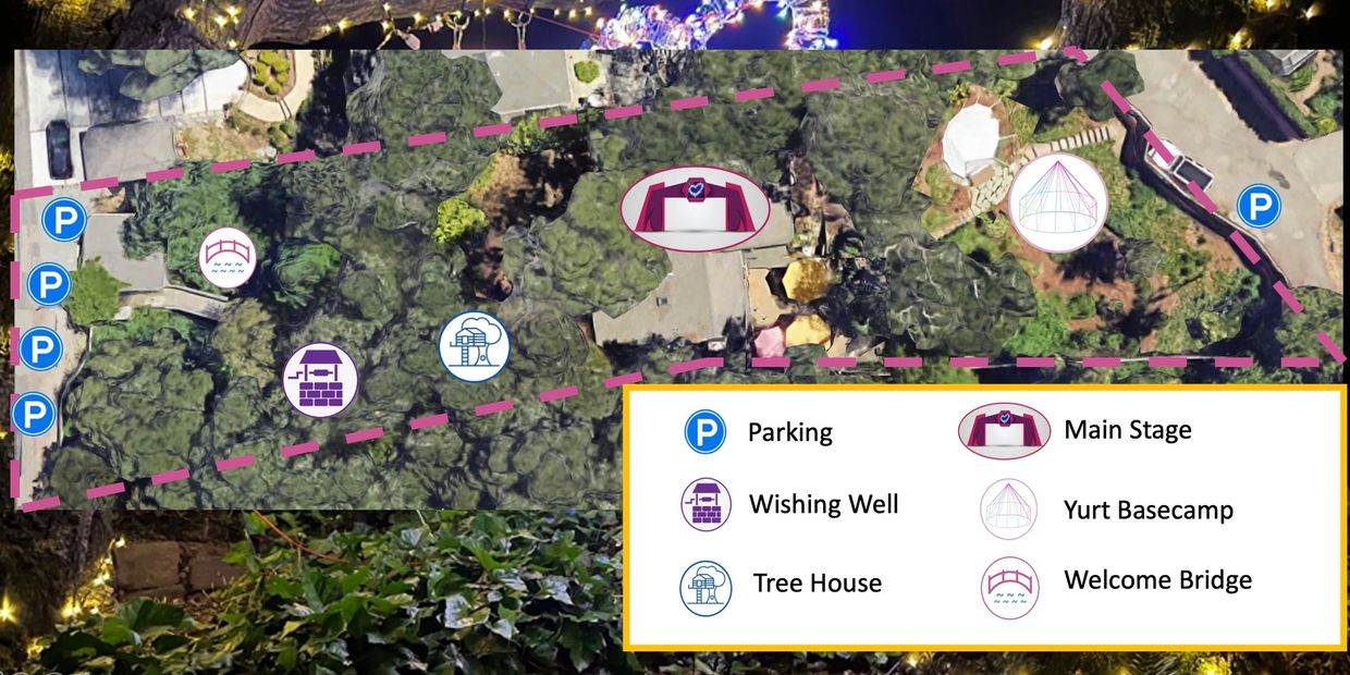 Hidden deep in the countryside of the Oakland Hills is a mystical manor. Once a year it transforms itself to a magical, musical utopia. Explore the grounds and discover an ivy covered a wishing well, or the hidden treehouse. Summit Yurt Basecamp and enjoy the indoor/outdoor light show, but beware the screeching smoky beast within.